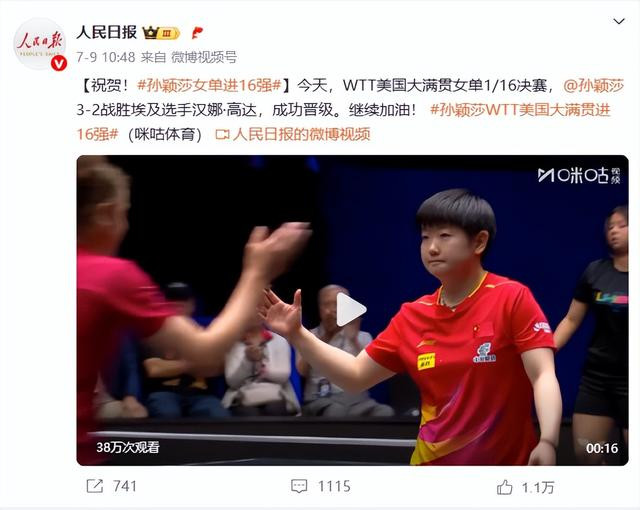 比赛结束后,人民日报通过官方渠道发文,表扬了孙颖莎在比赛中的表现,称她用顽强的斗志和出色的发挥为中国队赢得荣誉,同时期待她在后续比赛中带来更多惊喜。